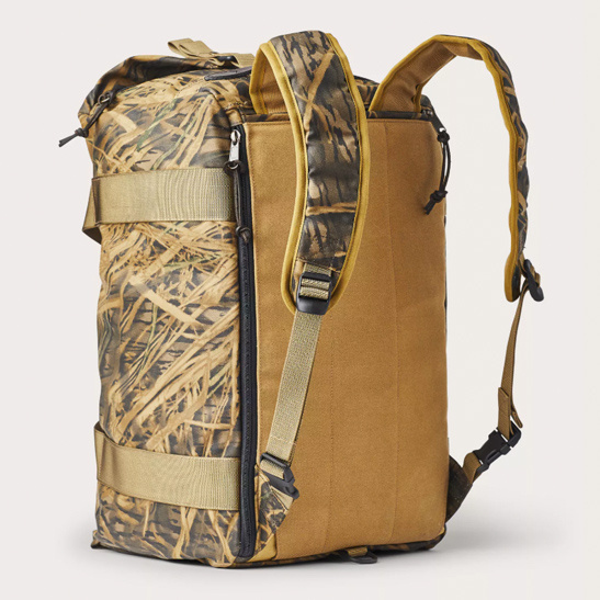 Haul it to the blind, on the boat or in the plane – our Tin Cloth Duffle Pack is overbuilt to go anywhere in any weather. It’s made with our signature oil finish Tin Cloth fabric that has protected outdoorsmen from rain, snow, brush and thorns for generations. Carry it like a duffle with the hand straps or deploy the backpack straps to use it as a pack. There’s even a coated-nylon expandable pocket to stash wet and muddy gear, and a padded laptop pocket for off-site work.